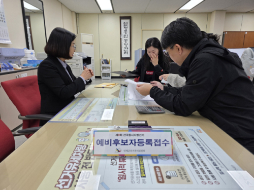 엄윤순 강원특별자치도의회 농림수산위원장이 25일 인제군선거관리위원회에서 인제군수 선거 예비후보 등록을 했다.