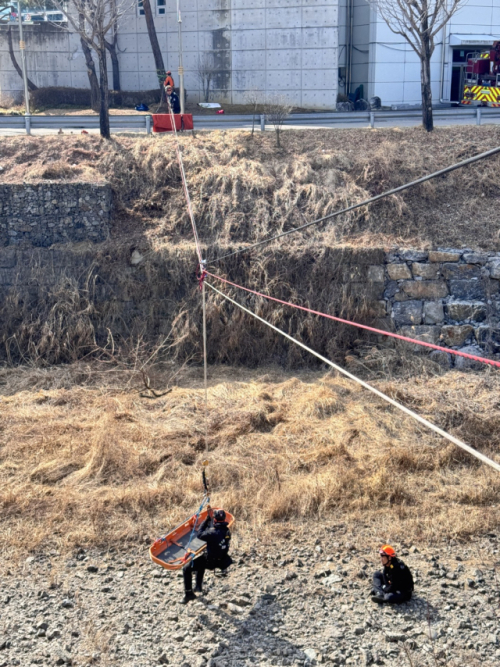 이번 훈련은 집중호우와 노후 하수관로 파손 등으로 발생할 수 있는 지반 붕괴 상황을 가정해, 고립된 요구조자를 신속하고 안전하게 구조하는 데 중점을 두고 진행됐다.