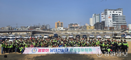 강릉시자율방범연합대(연합대장: 김재건)는 28일 남대천일대에서 대원 200여명이 참여한 가운데 봄맞이 환경정화 활동을 펼쳤다.
