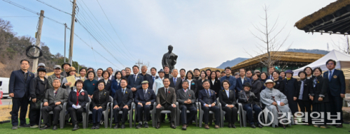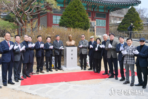 ‘김유정 선생 제89주기 추모제’가 29일 춘천 김유정문학촌에서 김진태 도지사, 허영 국회의원, 육동한 춘천시장, 김영래 강원일보 전무이사, 전상국 소설가(김유정문학촌 초대 촌장), 박종훈 춘천문화재단 이사장을 비롯한 내빈과 관계자들이 참석한 가운데 열렸다. 이날 추모제를 마친 후 김유정 생가에 새롭게 설치된 김유정 흉상 제막식이 함께 진행됐다.