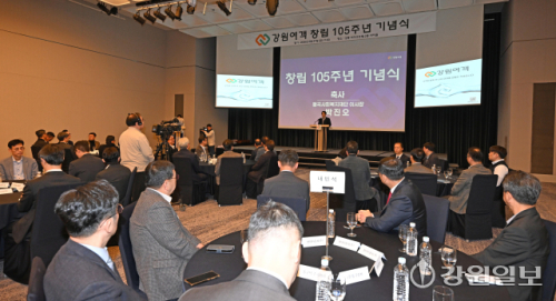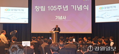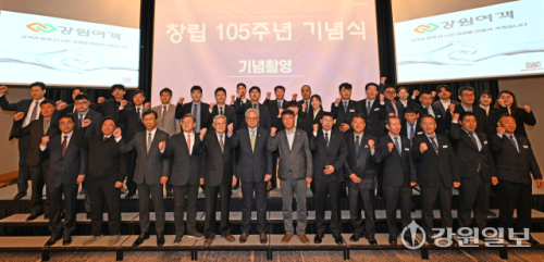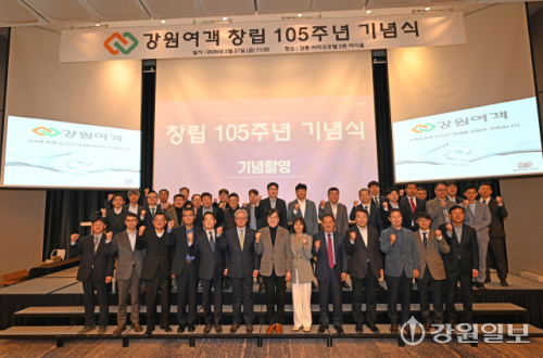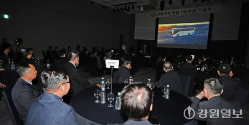 27일 강릉 씨마크호텔에서 열린 강원여객자동차㈜ 창립 105주년 기념식에서 김연성 강원여객 대표를 비롯해 김광래 도 경제부지사, 박진오(강원일보 사장) 동곡사회복지재단 이사장, 박덕영 강원대 강릉캠퍼스총장, 김형익 민주평통 강릉시협의회장, 나영진 강릉상공회의소 회장, 박학도 도 버스운송사업조합 이사장, 정의선 ㈜빌텍 사장, 문세원 고용노동부 강릉지청장, 조병훈 중소벤처기업진흥공단 강원영동지부장, 박경원 한국산업인력공단 강원동부지사장 등이 참석한 가운데 열렸다. 이번 기념식은 도내 유일한 100년 기업인 강원여객이 1921년 창립 이후 105년간 강원도민의 발 역할을 해온 발자취를 되돌아보고, 지속 가능한 지역 향토기업으로서 미래 비전을 공유하기 위해 마련됐다. 강릉=권태명기자