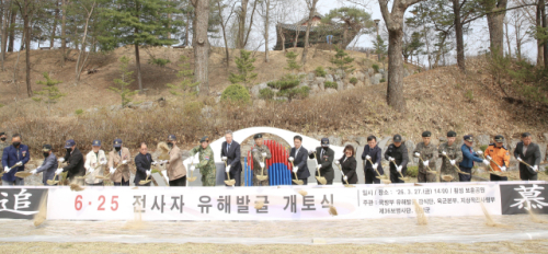 이날 개토식에는 주한네덜란드 대사 및 UN군 관계자를 비롯해 최태영 횡성부군수, 군·경·소방 및 보훈단체 관계자, 주민 등 100여명이 참석해 호국영령들의 넋을 기리고 안전한 발굴을 기원했다.