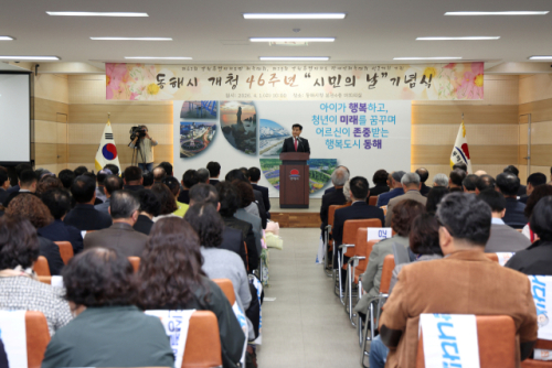 동해시는 1일 개청 46주년을 맞아 기념행사를 열고 ‘산업도시에서 머무는 도시로’의 전환 비전을 시민과 함께 공유했다.