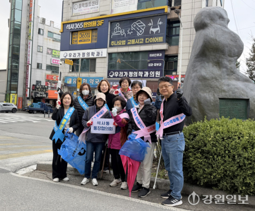 춘천 석사동통장협의회(회장:왕선자)는 1일 애막골 주택가, 공용주차장 일대에서 올바른 분리 배출법을 홍보했다. 협의회는 최근 석사동 불법투기 명예단속원을 구성, 석사동을 8개 구역으로 나눠 매주 정기 순찰과 계도 활동을 펼치고 있다.