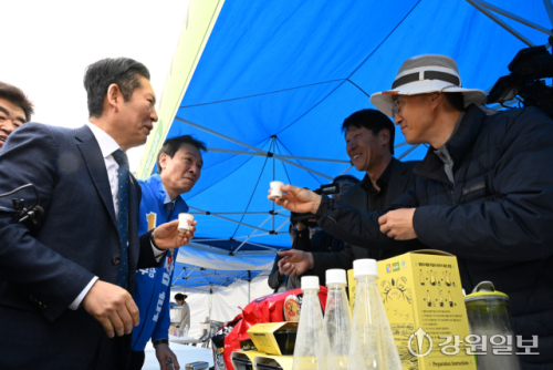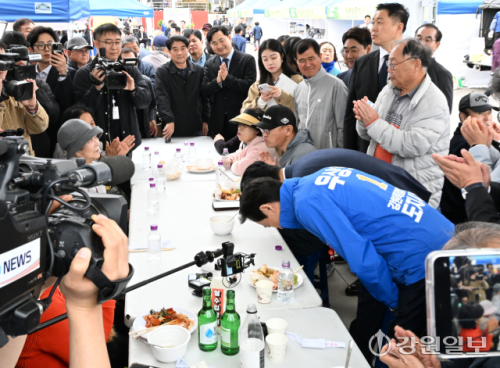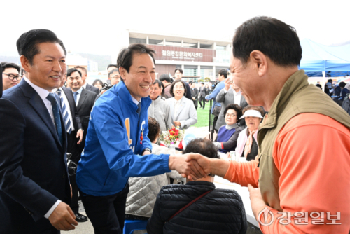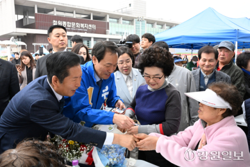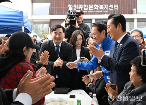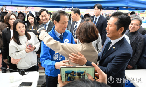 [철원군뉴스] [포토뉴스] 철원 군민과 인사하는 정청래 민주당 당대표와 우상호 강원지사 예비후보