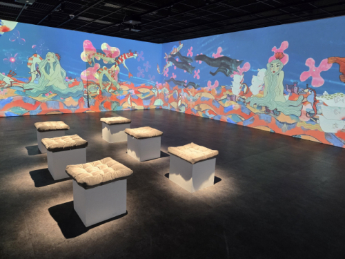 가로, 세로 약 12m 규모의 몰입형 미디어 아트 공간이 조성됐고, 작품 이미지들이 떠다니고 흐르는 장면은 관람객들이 마치 작가의 내면을 보는 듯한 경험을 제공한다.
