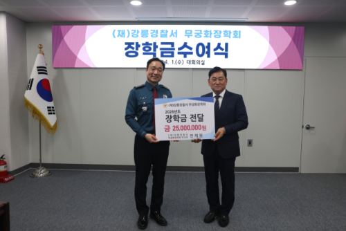 강릉경찰서 무궁화장학회(이사장:전제원)는 지난 1일 강릉경찰서 3층 대회의실에서 2026년 정기이사회를 개최하고 총 30명의 학생들에게 장학금을 지급하기로 했다.