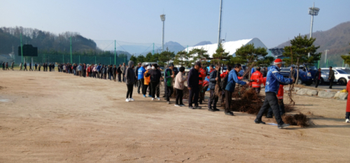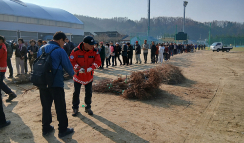 【평창】진부면은 식목일을 앞두고 2일 진부면민체육공원에서 ‘제8회 나무 나누어주기 행사’를 개최하고 지역 주민 700여명에게 선착순으로 묘목을 배부했다.