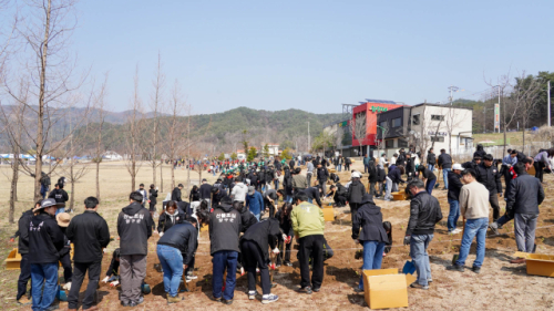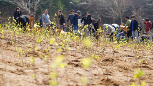 이날 행사에는 유관기관·단체와 주민, 공무원 등 500여명이 참여해 황금국수나무 6,000여 그루를 식재했다. 참가자들은 행사 시작에 앞서 산불 예방 홍보에 동참하고, 준비운동과 작업 설명을 거친 뒤 본격적인 식재 작업에 나섰다.