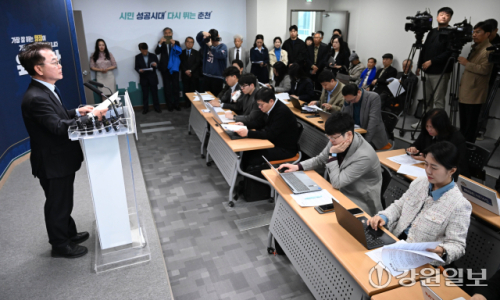춘천시청 브리핑룸에서 춘천시장 출마 선언 기자회견