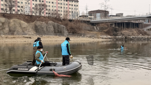 홍천문화재단(이사장:전명준)과 홍천군 수난구조대는 최근 홍천강 일대에서 홍천강 꽁꽁축제 이후 남은 쓰레기, 송어 폐사체 등을 수거하는 환경 정화 활동을 펼쳤다.