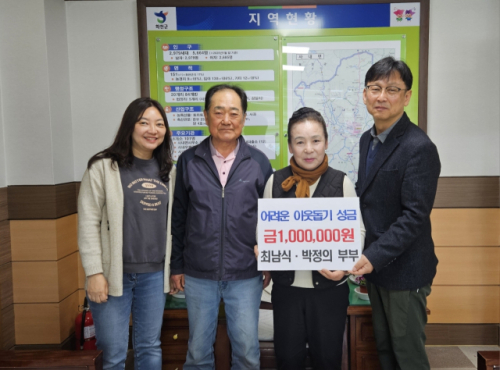 최남식(사내면 삼일3리 이장), 박정의(사내면 NK펜션 대표) 부부는 3일 사내면사무소를 방문해 변병희 면장에게 이웃돕기 성금 100만원을 기탁했다. 이들 부부는 펜션 운영 수익금 중 100만원을 수년째 면사무소에 이웃돕기 성금으로 기탁해오고 있다. 또 독거노인 안부 확인은 물론 무료급식 봉사 등 지역사회 봉사활동에도 앞장서고 있다. 이날 전달된 성금은 사회복지공동모금회를 통해 지역 내 조손가구와 저소득 가구의 의료비 및 생계비로 지원될 예정이다.