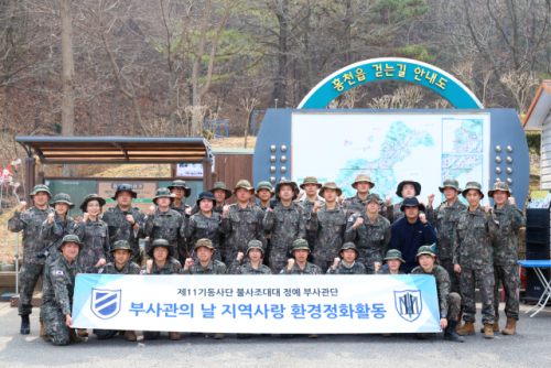 【홍천】육군 11기동사단 불사조대대는 지난 3일 ‘부사관의 날’을 맞아 홍천 남산 일대에서 대대 부사관 46명이 참여한 가운데 환경 정화 활동을 펼쳤다. 남산은 읍내 주민들이 등산, 산책을 위해 즐겨 찾는 곳이다.