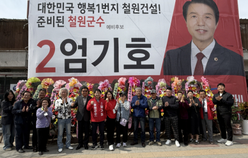 국민의힘 엄기호 철원군수 예비후보는 5일 동송읍 선거사무소에서 개소식을 열었다.