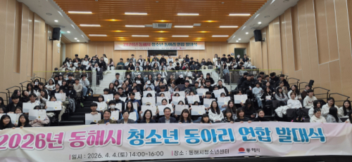 【동해】 ‘2026년 동해시 청소년시설 청소년 동아리 연합 발대식’이 지난 4일 동해시청소년센터 공연장에서 열려 올해 동아리 활동의 본격적인 시작을 알렸다.