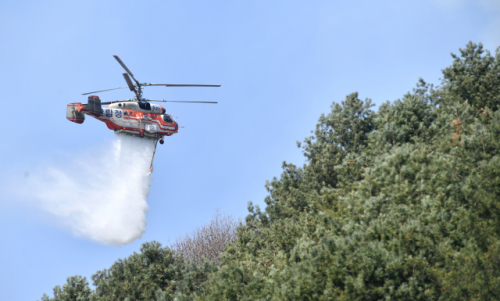 ◇지난 2023년 3월 화천읍 중리 일대에서 발생한 산불 현장에서 산림청 헬기가 진화에 나서고 있다. 사진= 화천군 제공