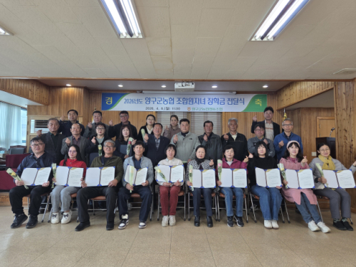양구군농협(조합장:박성용)은 6일 양구군농협 본점 3층 대회의실에서 2026 양구군농협 조합원자녀 장학금 전달식을 갖고, 조합원자녀 대학생 20명에게 각 150만원씩 지원했다. 박성용 조합장은 "지역의 일꾼으로 성장해나갈 학생들을 지원하게되어 기쁘고 더 많은 학생들이 혜택을 받을 수 있도록 노력하겠다"고 말했다.