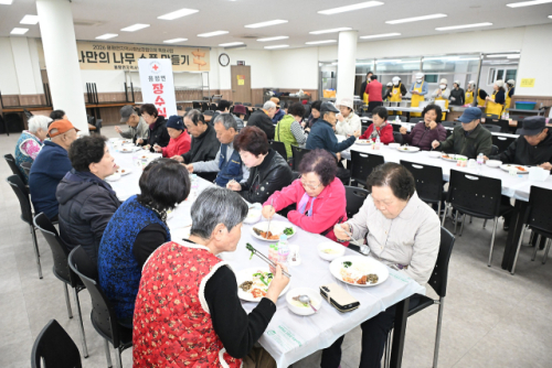 용평면적십자봉사회(회장:박정자)는 6일 용평면 금송회관에서 지역 어르신 100여 명을 초대해 ‘장수식당’ 식사대접 봉사활동을 실시했다.