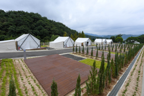 국토정중앙면 국토정중앙로 127 일원에 조성된 야영장은 총 51면 규모로, 잔디 야영면 19곳(A구역)과 데크 야영면 19곳(B구역), 오토캠핑장 8곳(C구역), 글램핑 5곳으로 구성됐다.