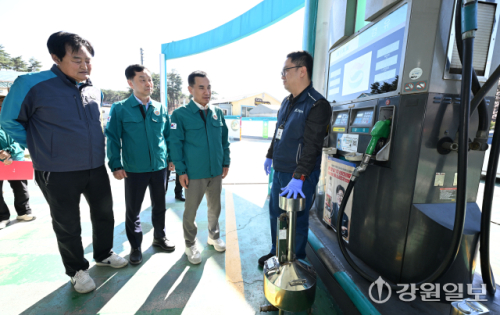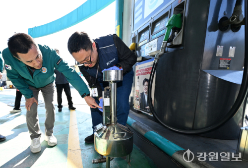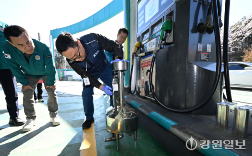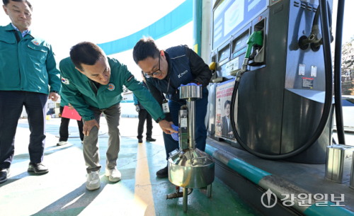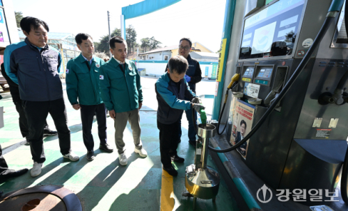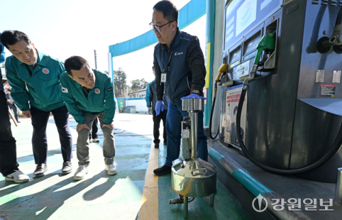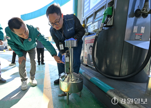 김진태 강원특별자치도지사는 7일 강릉시 안현동 주유소를 찾아 김상영 강릉부시장을 비롯한 한국석유관리원 강원본부 관계자와 함께 정량미달 및 품질검사 시료채취를 하고 중동 상황(국제 유가 변동)으로 인한 어려움 등을 청취했다. 강릉=권태명기자