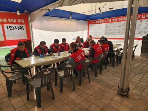 ◇장성광업소 수몰 반대 투쟁위원회는 7일 장성 탄탄마당 야외투쟁본부에서 긴급 회의를 열고 장성광업소 지하갱도의 수몰 여부 확인을 위한 실사단 구성 제안 등을 논의했다.