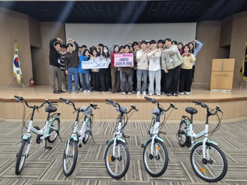 SGI서울보증(대표:이명순)은 8일 속초연수원에서 2026년 상반기 3급 승진자격 연수 대상 직원들이 사회공헌 마인드 양성을 위한 교육의 하나로 직접 제작한 자전거 5대를 속초시청소년상담복지센터에 전달했다.