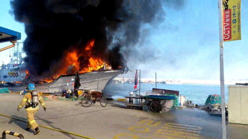 8일 오후 4시28분께 강릉시 주문진읍 어민수산시장 인근에 정박한 배에서 불이 났다. 소방당국은 장비 23대와 인원 68명을 동원해 진화 작업을 벌이고 있다. 오후 4시57분께 초기 진화를 완료했지만, 선박 내 기름량이 많아 완진까지는 시간이 다소 소요될 전망이다. 소방당국은 진화 작업을 마치는 대로 정확한 화재 원인과 피해 규모를 조사할 예정이다.