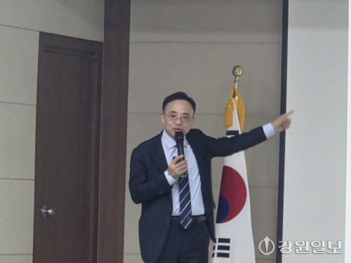 【강릉】김영익 내일희망경제연구소장이 지난 7일 강릉 율곡국학진흥원에서 열린 제6기 무실재 아카데미 상반기 두번째 강연에서 ‘글로벌 경제와 금융시장 전망’을 주제로 강연을 펼쳤다.