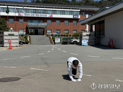 김 예비후보는 8일 오전 양구군청에서 양구읍사무소까지 삼보일배를 진행하며 군민 지지를 호소했다. 그는 삼보일배를 하기 앞서 “행정의 미숙함으로 농민과 군민들이 많은 불편을 겪고 있다”며 “행정을 아는 준비된 후보로서 관공서 구간을 걸으며 제 의지를 보여주고자 했다”고 말했다.