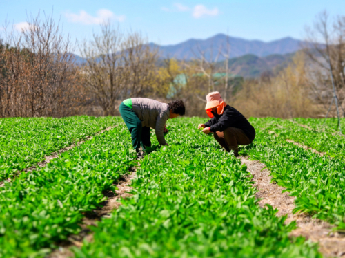 인제군의 청정 산나물 수확이 본격 시작됐다. 8일 인제군 남면 정자리의 한 산나물밭에서 주민들이 산나물을 수확하고 있다. 내설악의 큰 일교차와 차가운 소양강 바람을 맞고 자란 인제 산나물은 식감과 향이 뛰어나기로 유명하다. 사진=인제군청 제공