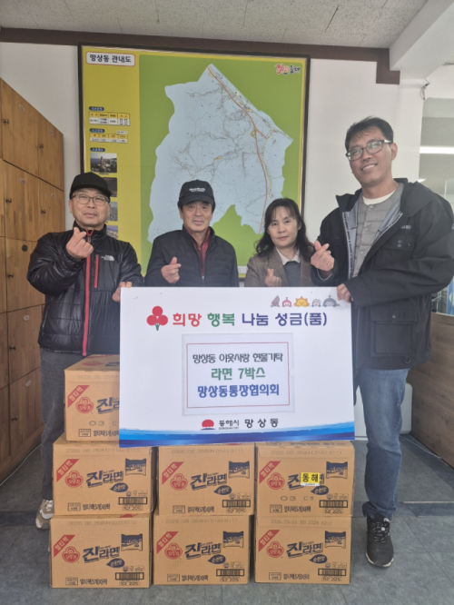 동해시 망상동통장협의회(회장:정우영)는 지난 8일 지역 내 어려운 이웃을 돕기 위해 십시일반 모은 정성으로 라면 7박스를 기탁하며 따뜻한 나눔을 실천했다.