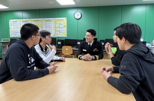 함장 등 강원함 주요 직위자, 북평고 출신 부사관…북평고 방문해 직업으로서의 해군 소개