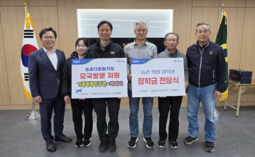 이날 다문화 농업인 2가정에 각 50만원씩 총 100만원의 농촌희망 장학금을 전달하고 1가정을 대상으로 모국방문 지원사업을 함께 추진했다.