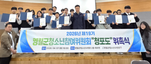 영월군과 군청소년수련관(관장:이두영)은 지난 7일 청소년수련관에서 전대복 부군수 등이 참석한 가운데 청소년의 자치권 확대와 정책 참여를 위한 ‘제19기 영월군청소년참여위원회 위촉식’을 개최했다.