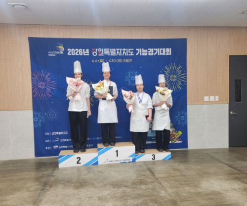 ◇강원특별자치도 기능경기대회가 지난 6일부터 10일까지 춘천시 일원에서 열린 가운데 정선정보공업고등학교가 게임개발부문 금·은·동메달을 싹쓸이 하고, 제과 직종에서 은메달을 목에 거는 등 우수한 성적을 거뒀다. 사진은 제과 부문 시상식 모습.