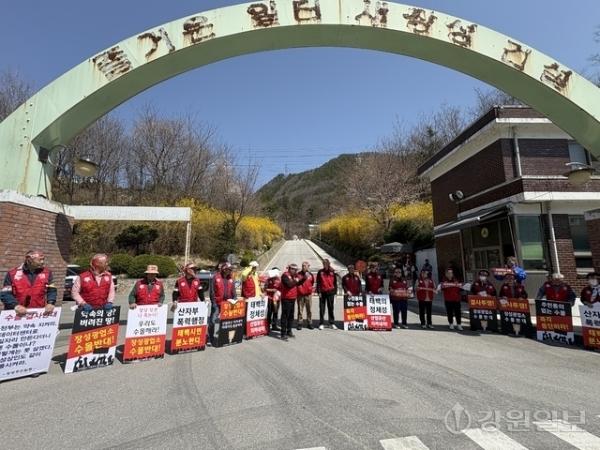 배수시설 가동 중단에 13일 장성광업소 정문에서 집회