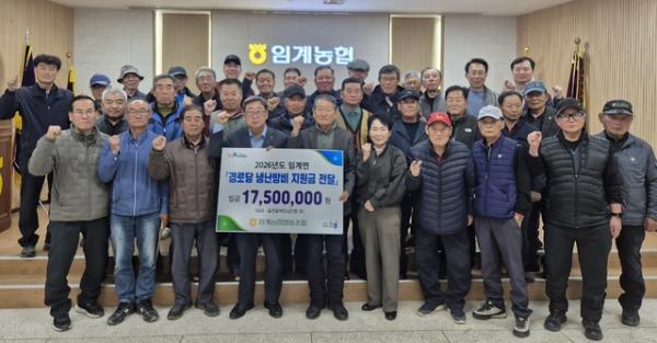 임계농협(조합장:손재우)이 13일 임계농협 소회의실에서 임계농협 임직원 및 영농회원 등 40여명이 참석한 가운데 영농지원 및 복지 증진을 위해 경로당 35개소에 각 50만원씩 냉·난방비 1,750만원을 지원했다.