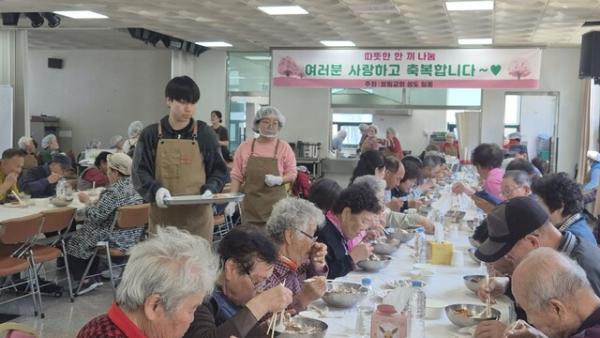 이날 식사는 새봄을 맞아 지역 주민과 어르신들이 건강하게 한 해를 시작할 수 있도록 교회 성도들이 정성껏 준비했다. 삼계탕과 제철 과일, 모둠 떡 등 영양 가득한 음식이 제공돼 현장에 따뜻한 분위기를 더했다.