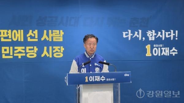 【춘천】이재수 더불어민주당 춘천시장 예비후보가 당내 경선 결선 경쟁 주자인 육동한 예비후보에게 토론회 참여를 촉구하며 현안에 대한 의견을 우선 질의했다.