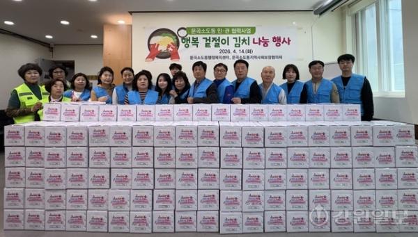◇문곡소도동행정복지센터(동장:이문형)·문곡소도동지역사회보장협의체는 14일 동 행정복지센터에서 민·관 협력사업으로 ‘행복 겉절이 김치 나눔 행사’를 진행했다.
