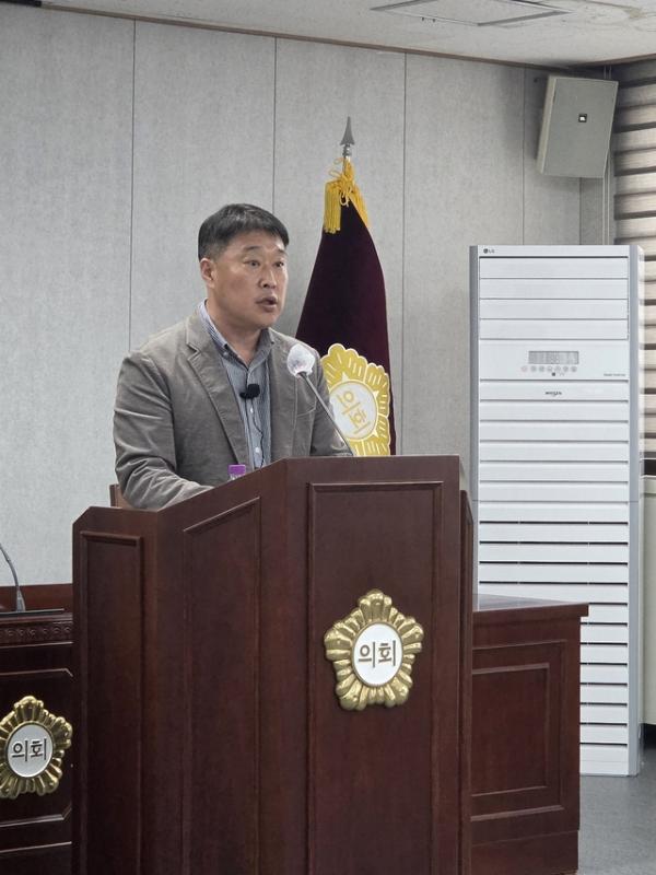 더불어민주당 탈당 및 무소속 출마 선언을 하고 있는 신동성 인제군의회부의장