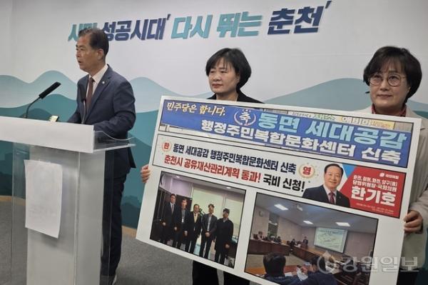 【춘천】동면 세대공감 주민복합문화센터 신축 사업을 두고 여야의 치적 논쟁이 불거졌다.
