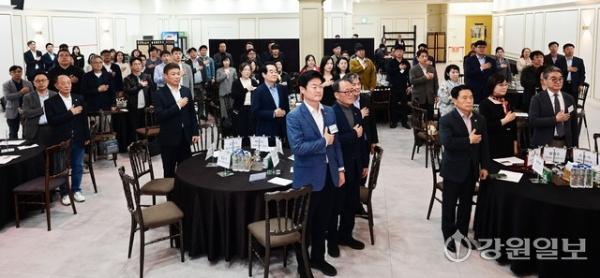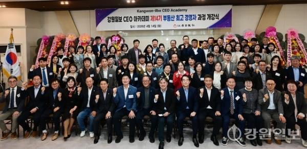 강원일보 CEO 아카데미 제14기 부동산 최고 경영자 과정 개강식이 14일 빌라드 아모르 원주에서 박진오 강원일보 사장, 김문기 원주시장 부시장, 곽문근 원주시의회 부의장, 구자열 더불어민주당 원주시장 예비후보, 김동수 주임교수와 수강생들이 참석한 가운데 열렸다.