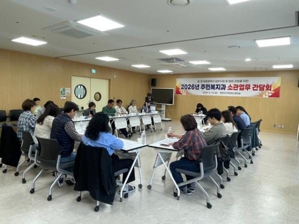 화천군은 14일 화천군가족센터에서 주민복지과장 및 담당과 5개 읍·면 담당자들이 참석한 가운데 2026년 주민복지과 소관업무 간담회를 개최했다.