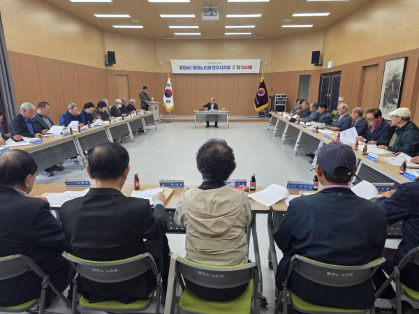 (사)대한노인회 원주시지회(지회장:유종우)는 14일 시지회 3층 대강당에서 이사, 감사 등 임원 31명이 참석한 가운데 2026년 제2차 이사회를 진행했다.