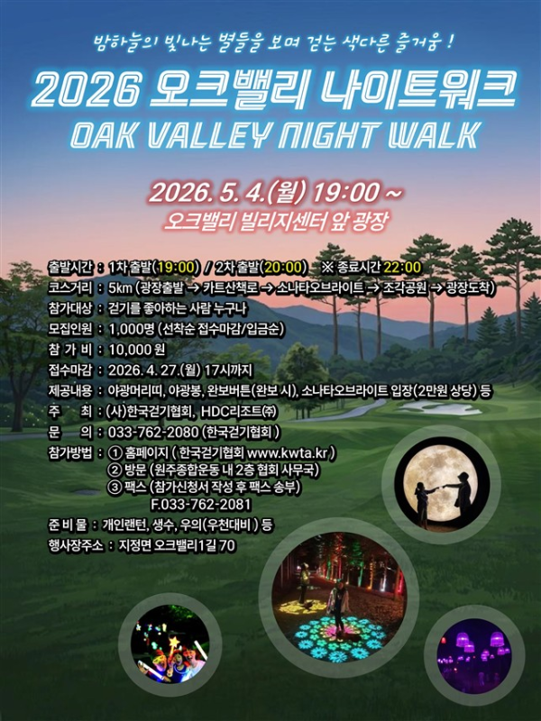 【원주】‘2026 오크밸리 나이트 워크’가 다음달 4일 원주 오크밸리 빌리지센터 앞 광장에서 개최된다.