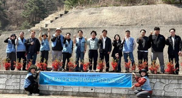 영월군과 한국광해광업공단은 지난 13일 영월 상동 폐재댐(광물찌꺼기 저장시설) 하부 화단 유휴부지에 영산홍 2,600주를 식재했다