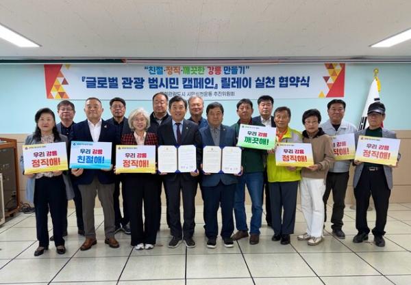 국제관광도시 시민실천운동 추진위원회(위원장:최길영)와 바르게살기운동 강릉시협의회(회장:구남오)는 15일 친절‧정직‧깨끗한 강릉 만들기 글로벌 관광 범시민 캠페인 릴레이 실천 협약을 체결했다.