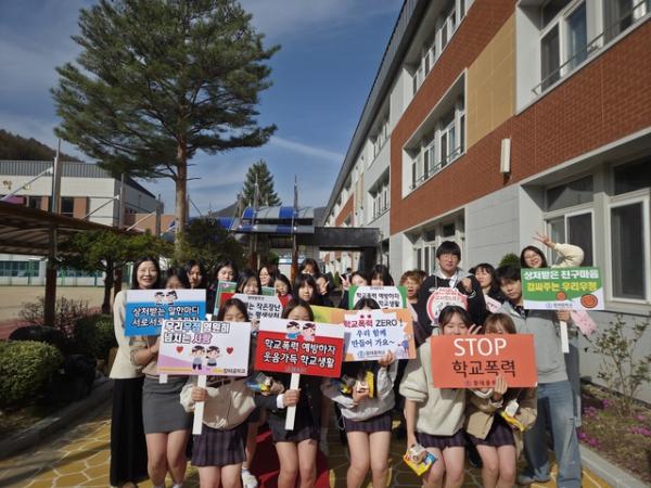 함태중(교장:배정희) 학부모회는 15일 학교 인근에서 학생회와 함께하는 학교폭력 예방 캠페인을 실시했다.