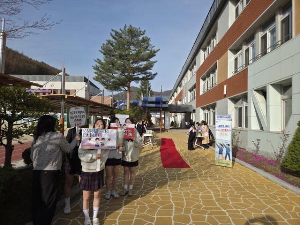 이날 학부모들은 학생들이 스스로 소중한 존재임을 느낄 수 있도록 등굣길에 레드카펫을 준비하고 폭력 없는 학교를 기원하는 마음을 담은 간식을 나눠줬다.